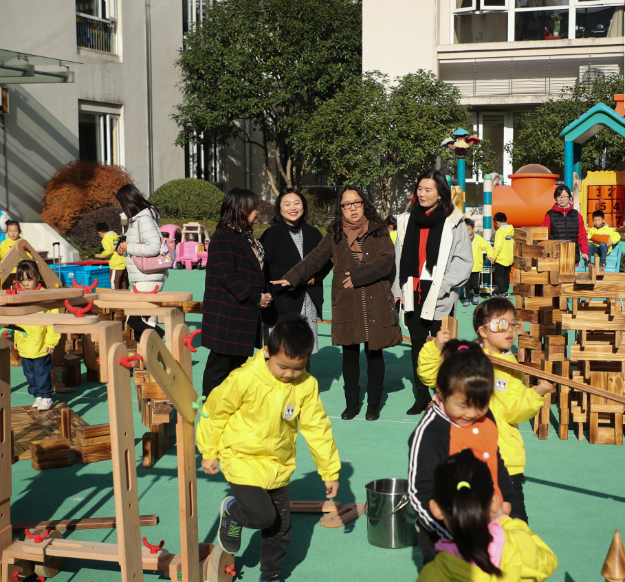 活动由游戏现场观摩、微论坛、专家点评三部分组成。首先,专家、教师与家长代表们共同观摩了徐汇实验幼儿园小中大班幼儿的自主性游戏——室内外角色游戏、户外建构游戏和户外沙水游戏,孩子们一张张自信的笑脸给参观者们留下了深刻的印象,自由、自主而快乐的游戏氛围洋溢在园所的每个角落。