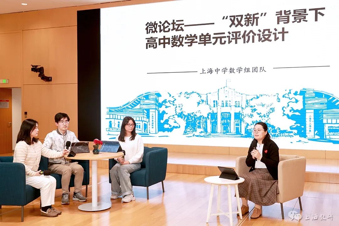 上海中学数学教研组的俞红、蒋威、郭子瑜、周歆育四位教师围绕“‘双新’背景下高中数学单元评价设计”主题开展了微论坛。